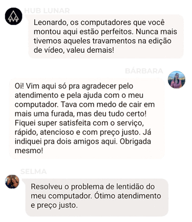 Estou à disposição para te ajudar no que for preciso, seja para montar um computador do zero, até deixar ele funcionando redondinho em suas mãos novamente, como deveria de ser!
